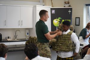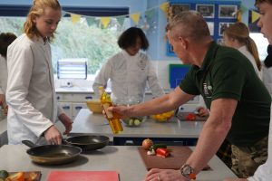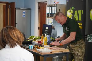 Following this Colour Sergeant Mike Beaton MBE and his colleagues from the Royal Marine Commandos Education Awareness Team (RM-EAT) delivered straight-talking, honest life skills and Royal Navy career advice through an exciting poultry preparation and nutrition masterclass experience. CSgt Beaton, who has served around the globe from operational tours of duty have in Northern Ireland, to the jungles of Serra Leona, has also represented Great Britain 7 times in the World Long Course Triathlon Championships, from Japan to Denmark, Switzerland to France and all this whilst on tours of duty within the Royal Marines. Spoking about the importance of nutrition and exercise, CSgt Beaton said that understanding and gaining knowledge of cooking healthy meals is a foundation stone for a healthy lifestyle, “in an age where we consume too much sugar and salt and don’t have nutritional know-how readily available, we aim to not only educate but to highlight the importance of a healthy diet, particularly within a role in the armed forces”.