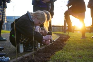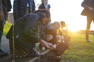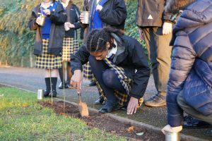 With National Tree Week (November 27 – December 5) pupils and staff from Prep to Sixth took the opportunity to kick start a programme inspired by last month’s COP26 to plant hundreds and hundreds of carbon-absorbing trees – as part of Queen’s climate change action plan. The initiative organised by Joe Mann, Head of Food and Nutrition, is part of Queen’s overall efforts to increase tree coverage and give all pupils the opportunity of hands-on experience in planting and caring for trees while learning about the importance of growing all sorts of plants at Queen’s in helping tackle climate change.