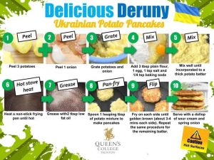 At Queen’s we have continued to celebrate Ukraine, its people and its foods through cooking. Here the Year 5’s and 6’s made more traditional Ukrainian dishes with Mr Mann, Head of Food and Nutrition, which included delicious Ukrainian Deruny Potato Pancakes and sweet Ukrainian Sochniki Cheese Cookies.