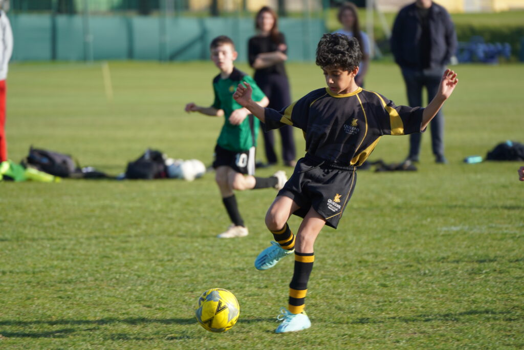 The team delivered an exciting and determined performance , creating a host of chances and dominating large periods of the game. Unfortunately, despite their attacking intent and relentless pressure, the final result didn’t go their way as they fell to a narrow defeat. The opening passage of play consisted of Queen’s passing the ball around the opposition without them getting a touch on the ball, and having a great opportunity to score. From the first whistle, they played with energy and purpose, controlling possession and moving the ball with confidence. Queen’s attacking players found space well, and it didn’t take long before they carved out our first big opportunity. A brilliant through ball split the opposition’s defence, but their goalkeeper made an excellent save to deny what looked like a certain goal. As the game progressed, Queen’s continued to push forward, creating multiple opportunities. Queen’s wingers stretched the play, delivering dangerous crosses into the box, and Queen’s midfield dictated the tempo. Against the run of play, the opposition scored a couple of goals to take the lead. Even then, the boys response was immediate and full of character—Queen’s pressed high, won key battles and kept the pressure on. A flurry of chances followed, with shots narrowly missing the target or being blocked at the last moment. On this occasion Clayesmore came out on top, in what was a very tight match.