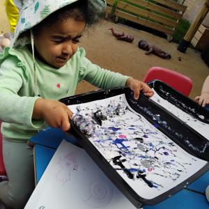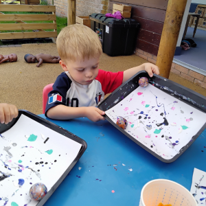 In Puddleducks, the story Whatever Next sparked curiosity and conversations about space and travel. The children have been learning about different modes of transport, using a variety of vehicles to explore textures through painting, shaving foam, and other sensory materials. Water play has also been a big hit this week, providing opportunities for collaborative play, exploration, and cooling off in the sunshine. To round off their busy days, the children have been enjoying picnic-style teas in the garden with their friends.