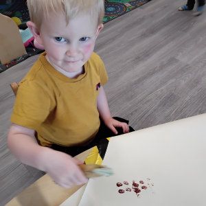In Cottontails, the focus has been on farm animals, inspired by their book of the week Spot Goes to the Farm. The children have enjoyed exploring a themed sensory tray, learning the names of different animals and the sounds they make through songs, stories, and small world play. They’ve also had a wonderful time having picnics in the garden and making the most of free-flow play between the indoor and outdoor environments, building confidence and independence as they move between spaces.