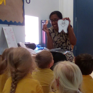They learnt how to brush their teeth properly and each received a goody bag, complete with a two-minute timer! The fun continued as the children dressed up as dentists and role-played with their friends.