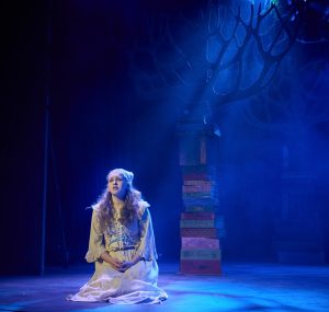 The first challenge faced musical director, Mr Jenkins, and assistant M.D., Miss Wills: there is a huge amount of singing in the show, with tricky harmonies and solos demanding precise rhythm.  The choral work is undoubtedly some of the most complex material faced by any cast in one of our senior shows, but everyone worked together to make a great, rich and sometimes surprising sound. ‘Into the Woods’ is not the kind of show to finish with an upbeat mega-mix, but the finale sequence of ‘Children Will Listen’ especially brought the show to a rousing emotional ending.