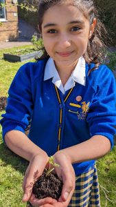 Our pupils growing their own food at school not only reduces carbon emissions by the absorption of carbon dioxide from the atmosphere but growing your own food also reduces carbon emissions through lowering all our Food Miles.