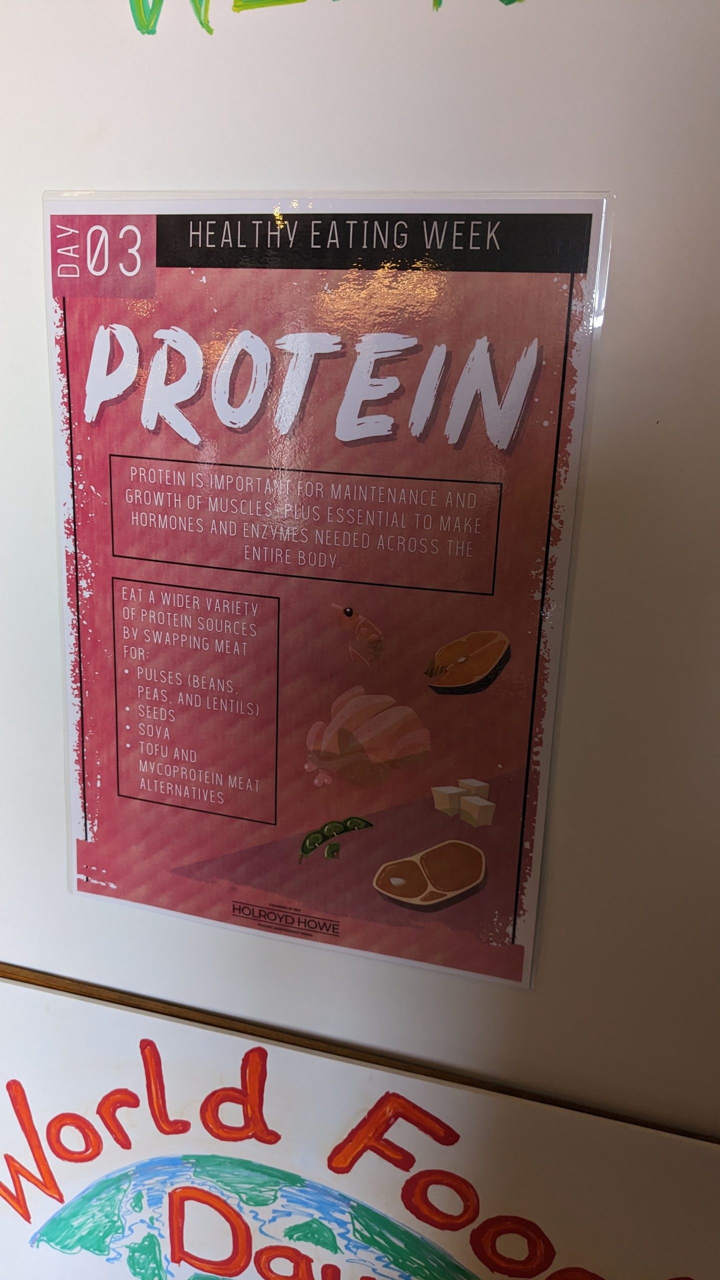 Finally on Friday as a school, we looked at the theme of ‘reducing food waste’. The aim was for pupils to think about what the right amount at mealtimes is, portion sizes and how we avoid throwing food away. For the day our catering team worked hard to create a food waste farmers market display near to where pupils make their food choices to highlight both the environmental and economic issues impacting our food systems of food waste. In the Food and Nutrition kitchen classrooms, pupils already compost their food waste as part of their wider move towards zero waste, but this week saw pupils collecting and separating their food waste with the egg shells being recycling into teaching resources for Biology.