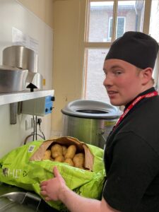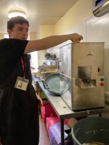 This week the four students joining us enjoyed learning about how to use larger cooking equipment that we have on site,  including the potato rumbler and chipper, ready for fish Friday.