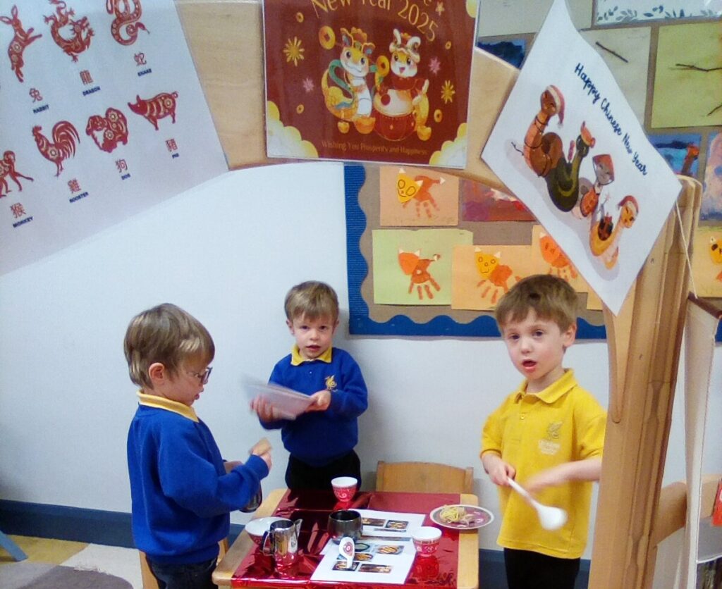 It’s been a time of discovery and celebration at Queen’s Minis! The children this week have been learning about the rich traditions of the Lunar New Year, through exploring the Chinese restaurant in the role play area, and the noodles in the sensory tray as well as discussions about traditions and the year of the snake. The start of their week was equally exciting. The focus was on woodland animals and hibernation. From painting vibrant murals and constructing cosy bear dens to creating adorable handprint foxes and imaginative dress-ups, the children have embraced the natural world. The Minis put their skills to work building dens from sticks and creating charming clay hedgehogs during their outdoor ed session.