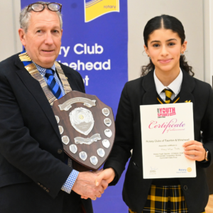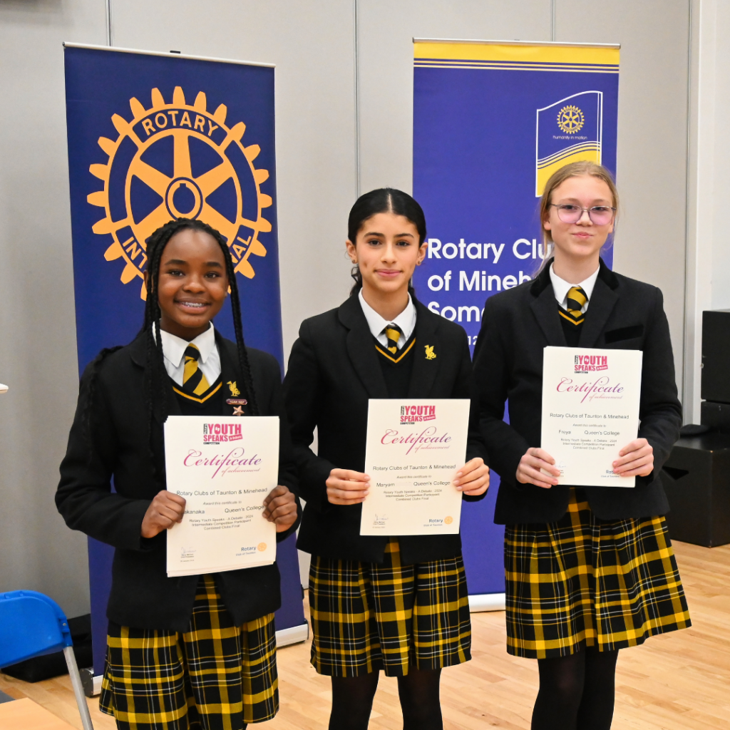 On Friday 26 January, Maryam, Makanaka and Freya took part in the Taunton and Minehead District Rotary Club’s Youth Speaks competition. Their impressive performance, tackling the complex topic of human cloning, earned them first place amongst entries from two other local schools. Such was the interest from Queen’s College pupils, a separate internal competition had to be arranged to determine which team would represent the school on Friday.