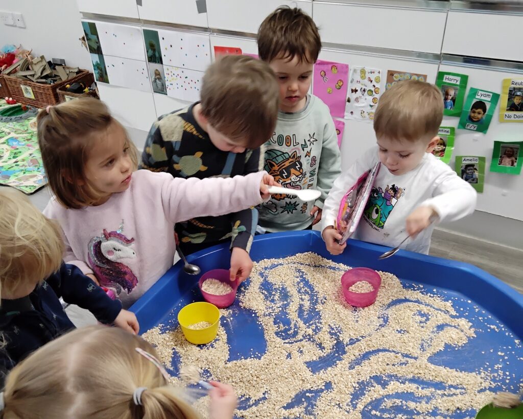 Meanwhile, Puddleducks created a role-play library, learning about caring for books and sharing stories with friends. A special visit to the Pre-Prep library was a highlight, where they designed their own bookmarks and explored sensory materials linked to storytelling.