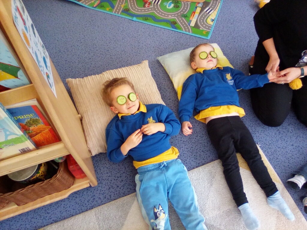 This week marked Children’s Mental Health Week, the Queen’s Minis embracing the importance of self-care and relaxation. They recreated a spa day experience, complete with soothing music, cucumber eye treatments, and a refreshing foot spa! Their focus book, Marvellous Me, encouraged discussions about individuality, celebrating the idea that everyone is unique and wonderful.