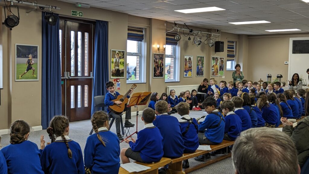 Almost 30 soloists from the Prep School performed in a jam-packed and exciting Lunchtime Concert today. There were solos, duets, unaccompanied and accompanied pieces in a massive variety of styles. Antonin opened the concert with a beautiful guitar piece. Solos followed from beginners to experienced musicians on flute, oboe, clarinet, saxophone, violin, guitar, piano, snare drum and voice. It was wonderful to have four electric guitar performances too! Megan ended the concert with a beautiful lullaby ‘All the pretty little horses’. Well done, everyone!