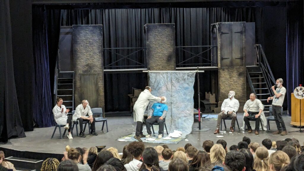 For Ray’s Charity Day, the school has been raising money for Alzheimer’s society. This charity is very close to a lot of families within the school community and they showed their generosity through their donations.  At break and lunch time, there was a huge bake sale with a vast variety of cakes ranging from cookies to millionaire shortbread which were all very popular and did not last very long!  To top the day off, students paid to put their name in a box for the pie in the face event. As the Head of House, I hosted this event during Chapel and ten lucky names were pulled out, giving them the rare opportunity of throwing a pie in the face of the teachers involved. A huge thank you must be given to: Mr Green, Mr Mann, Mr Speyer, Mr Rich, Miss Wessels, and Reverend Kelley for being such amazing participants. The teacher that got pied by each student was determined by the spin of a wheel which had their faces on. Overall, it was an incredibly successful day for a great cause and the total amount of money raised will be announced next week.