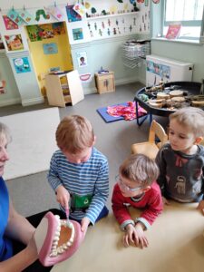 Puddleducks children have thoroughly enjoyed the oral health theme this week, spending lots of time in the role-play dental area as well as using the small set of teeth to discuss how we ensure we can clean our teeth properly. There have also been lots of discussions about the upcoming visit from the Easter bunny as well as children’s favourites treats they would like to receive for Easter.
