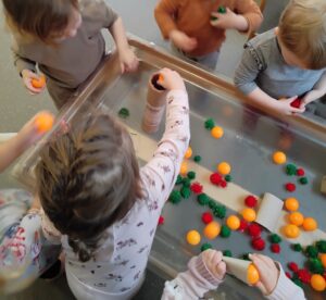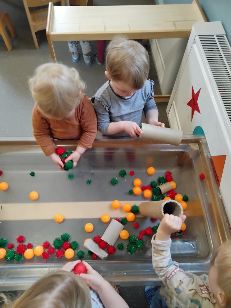 Tiggywinkles children have been learning some new mathematical language whilst playing with the pom pom drop, using words within their play such as up and down.