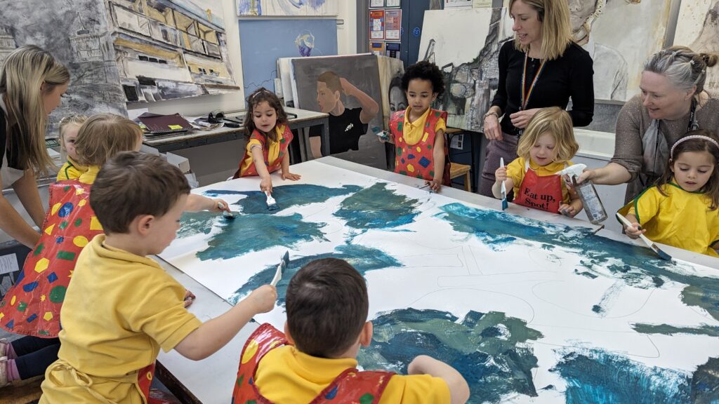 The children also made a visit to the Senior School art department on Monday for a creative painting session led by Mrs Monk and her fantastic team of art staff where the children helped to make magic wishing beans from pebbles and a giant beanstalk as a culmination to our growing theme and focus on the ‘Jack and the ‘ story this term.