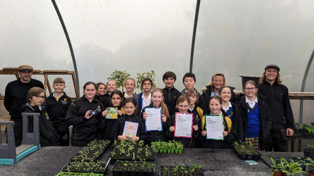 Queen’s College pupils have been rewarded for all the hard work that they do to champion growing food sustainably, increasing biodiversity and protecting the environment across the school by being awarded the Royal Horticultural Society School Gardening Awards Level 1, 2 and 3 this Earth Day.