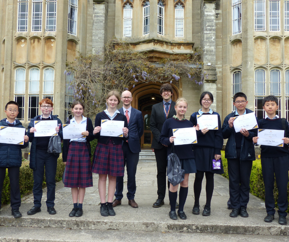 Monday 29th April marked the second annual Queen’s Maths Challenge. The competition is for teams of four Year 8 students across a variety of challenges. This year, two teams from Queen’s College participated consisting of Max, Alex, Ptolemy and Kirk, and Emma, Charlotte, Finn and Felix, who were up against teams from Bishop Fox’s, Court Fields, Port Regis, and Tockington Manor, all of whom provided very stiff competition.