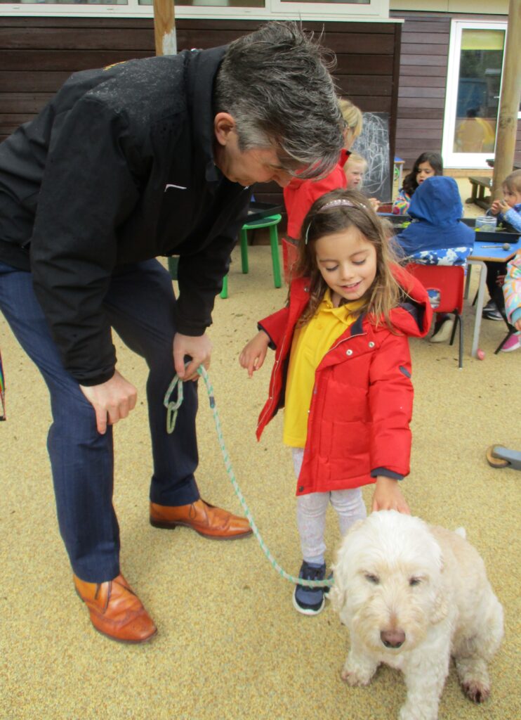 Further excitement came with an impromptu visit from Mr. Noad and his canine companion, Percy. Sensory play wasn’t left out either, as a shaving foam activity provided a fun way for the children to practice writing letter shapes with their fingers. And for those developing fine motor skills, the playdough offered an opportunity to hone their cutlery skills.
