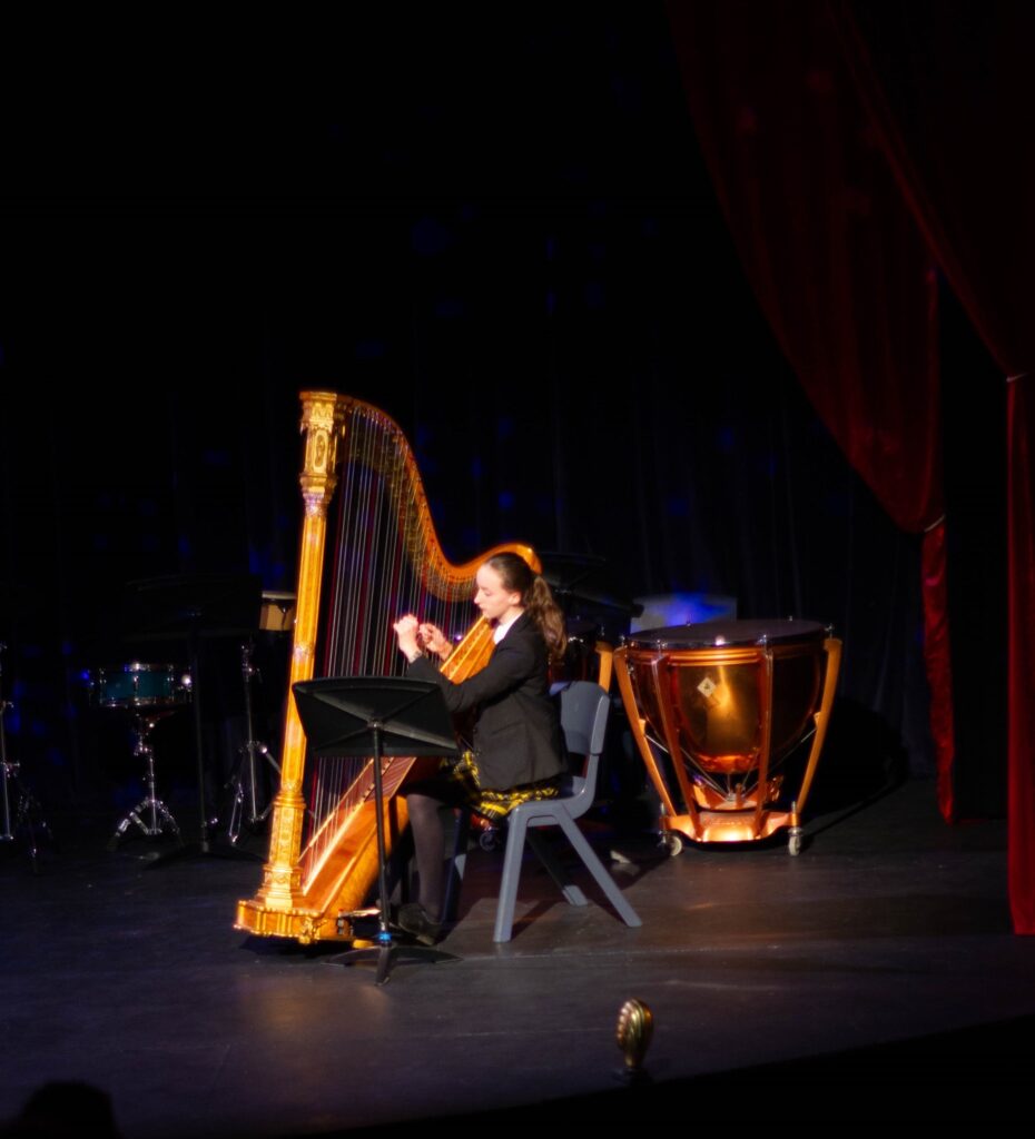 The concert featured an eclectic mix of performances, from acoustic guitar and Joan Baez ballads to Handel arias, harp solos, string trios, and piano medleys blending Chopin with chart hits. Highlights included beautiful contributions from international students, adding a global touch to the evening. A special moment came as Queen’s talented music teachers joined the students on stage, demonstrating the power of practice and perseverance.