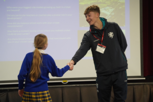 Queen’s had the privilege of welcoming professional cricketer Alfie Ogborne of Somerset County Cricket Club for an inspiring session aimed at developing key sporting and personal skills. A talented left-arm bowler and an exceptional role model, Alfie engaged students in a Q&A session in the Birchall Hall, joined by Mr Venning, who also shared his sporting insights. The discussion focused on goal setting, overcoming challenges, and the demands of professional cricket, including training routines, mental preparation, and the experience of working alongside England internationals.