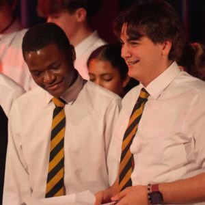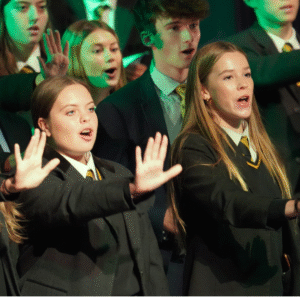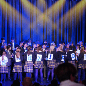 In true Queen’s fashion, the Senior School closed an exciting half term with an explosive event – the annual House Music competition! After a week of outstanding performances in the Performing Arts Festival, all students from Years 7 – 13 showcased their vocal versatility in this hotly anticipated event. The day saw pupils engage in an intensive rehearsal schedule, led entirely by the Heads of House, with each house working on two songs – the first drawn from a hat and the second, chosen by the captains on this year’s theme – Ultimate Covers… Their creativity was then put to the test in the afternoon’s fully sung performance. This year featured an additional challenge… the Battle of the Bands!