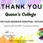 Proud to announce Queen’s College’s donation of £474.98 to 2BU Somerset, uplifting LGBTQ+ youth in our community! Last November, we celebrated diversity with arts, crafts, food, and performances from talented…