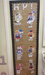 In our classroom, we have a display of all the HPL superheroes. We put our name next to the HPL skill or attitude that we would like to focus on. When we achieve a house point for that skill or attitude, we are then able to move our name to a new HPL superhero and have a new target!
